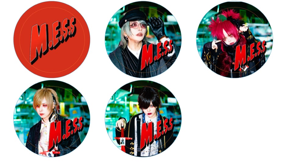 M.E.S.Sのロゴ アメコミver.や呪々MV撮影のスーパーでのロケーション時に撮られたメンバーがデザインされた缶バッジです。